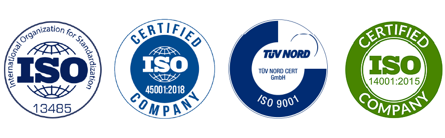 - сертифікація за системами якості ISO 9001:2015, ISO 14001:2015, ISO 45001:2018, ISO 13485:2018;